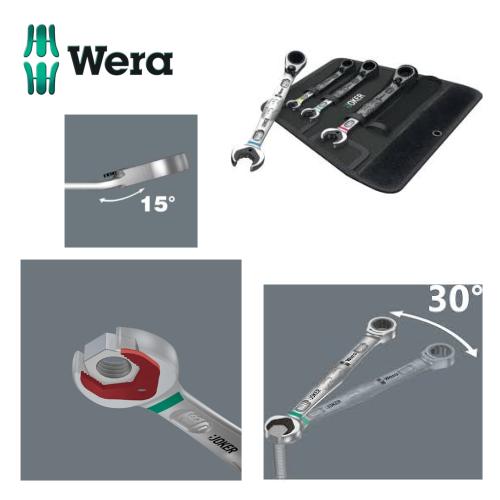 Joker steek/ring-ratelsleutel met gebogen ratelzijde en omschakelpal.