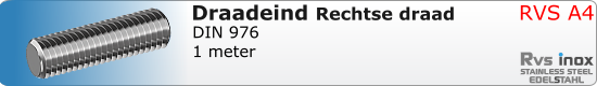 Standaard heeft draadeind een lengte van 1 meter, met boutdiktes die in RVS A2 lopen van M3 tot en met M30.