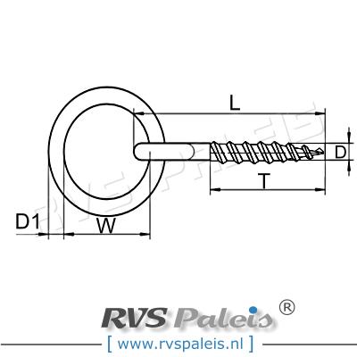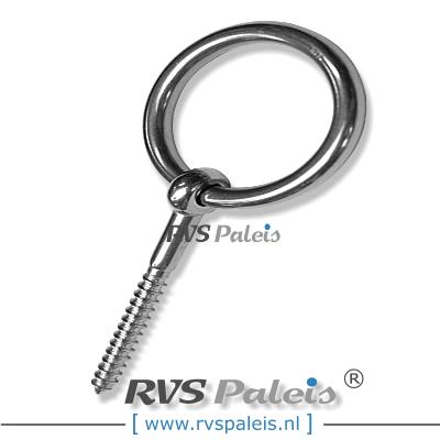 Rvs ( INOX ) oogbout met houtdraad en ring.