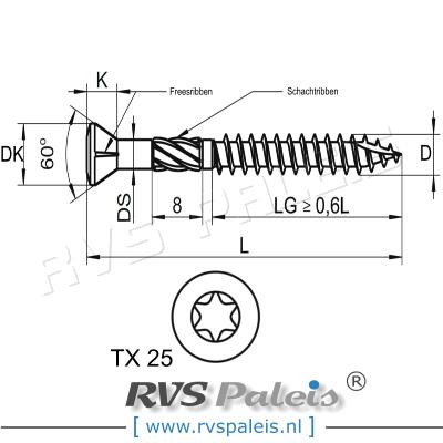 RVS (INOX) Torx-bit TX25 x L 25mm