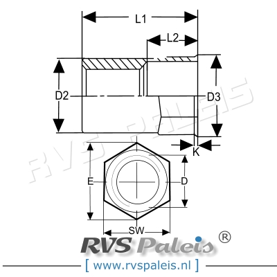 Alle bouten en moeren in ons programma hebben metrisch grove rechtse draad (standaard), tenzij anders vermeld.