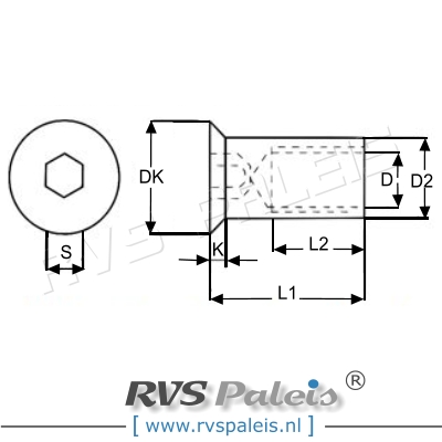 Rvs ( INOX ) hulsmoer met binnenzeskant.