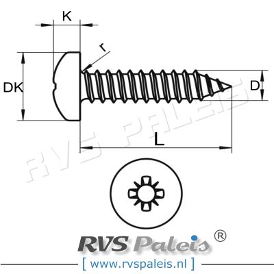 Rvs ( INOX ) pancilinder plaatschroef ( pozidrive ).